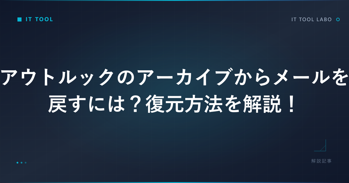 ・ アウトルックのアーカイブから戻す具体的な手順と操作方法が分かります