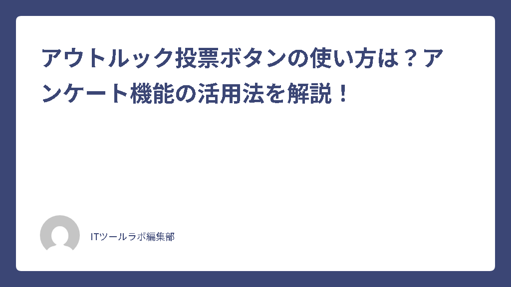 ここではアウトルックの投票ボタンの基本的な使い方と回答方法について説明していきます。日々の業務でメールアンケートをスムーズに行うための具体的な設定手順や、回答者側の操作、そして結果の確認方法などを詳しくまとめました。順に見ていきましょう。