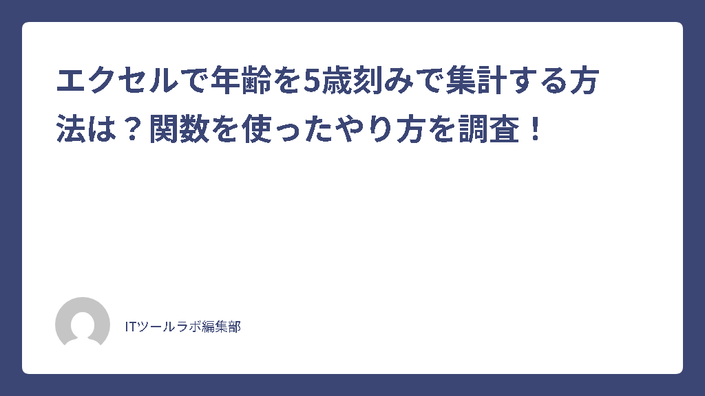 今回は、エクセルで年齢を5歳刻みで集計する方法を中心に、関数を使ったやり方やピボットテーブルの活用法について解説していきます。