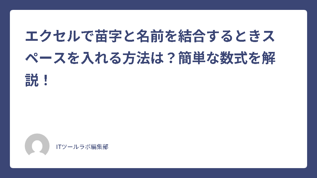 エクセルで苗字と名前を結合するときスペースを入れる方法は?簡単な数式を解説!