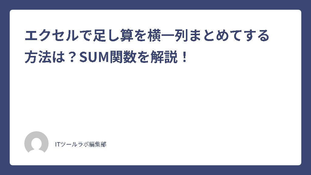 今回はエクセルで足し算を横一列まとめてする方法についてお伝えしました。以下に、本記事の内容を要約します。