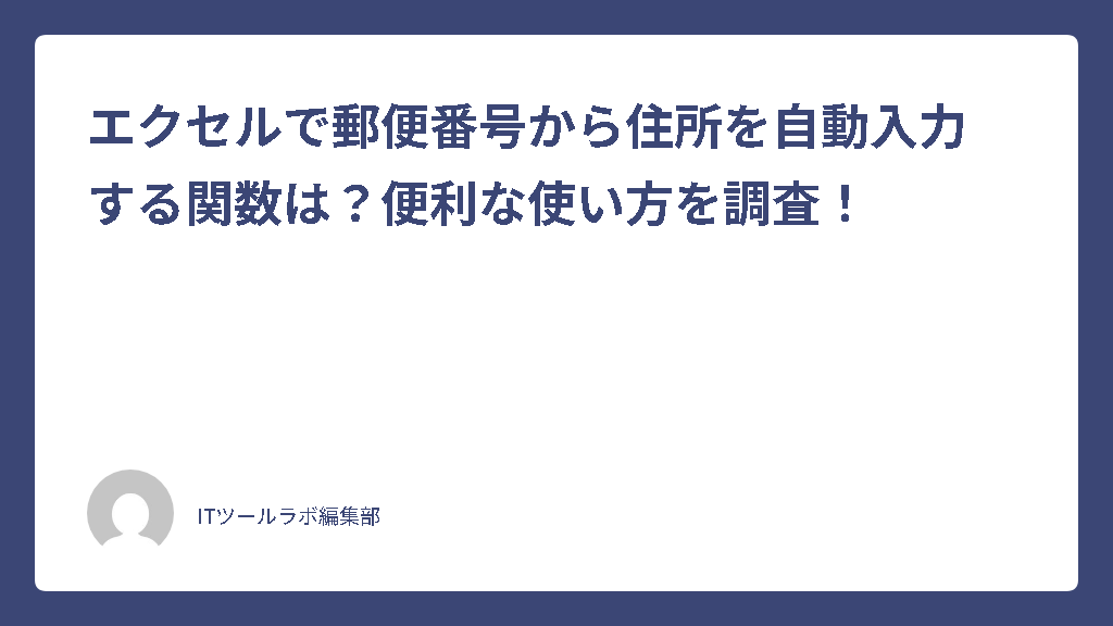 この記事では、エクセルで郵便番号から住所を自動入力する関数や、その便利な使い方について調査した情報をご紹介します。