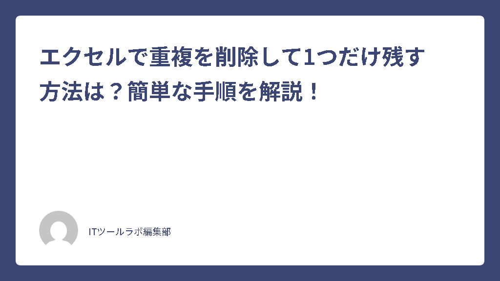 エクセルで重複を削除して1つだけ残す方法は?簡単な手順を解説!