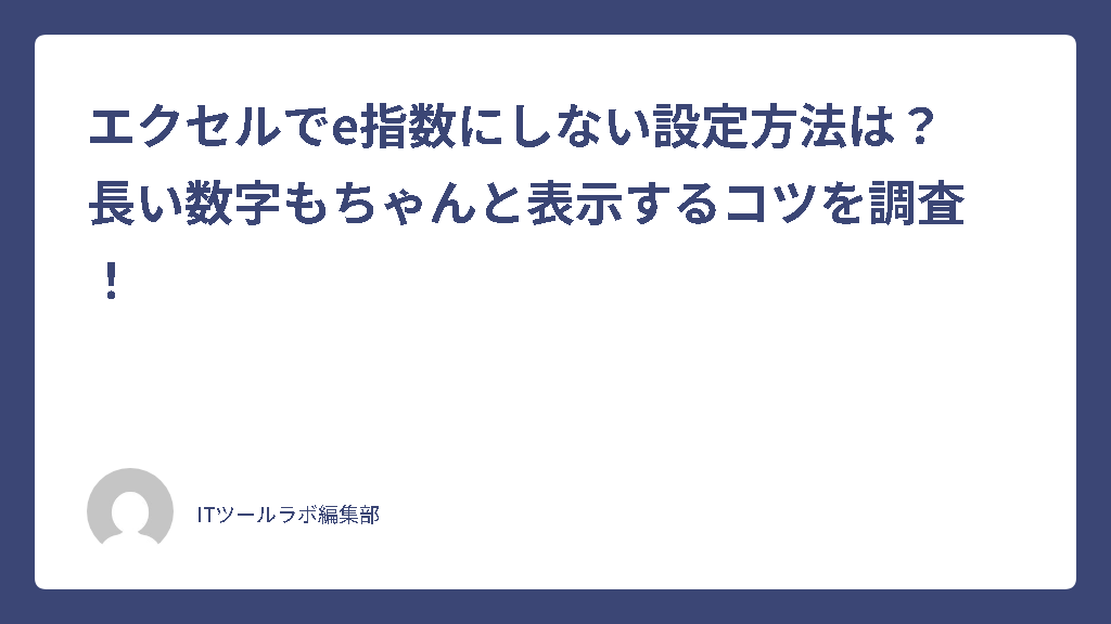 こんにちは。ITツールラボ、運営者のNです。エクセルで長い数値を入力したときに、いつの間にか「1.23456E+10」のようなe指数表記に変わってしまって困った経験はありませんか?せっかく正確な数字を入力したのに、勝手に変換されてしまうと作業が進まずストレスでしょう。