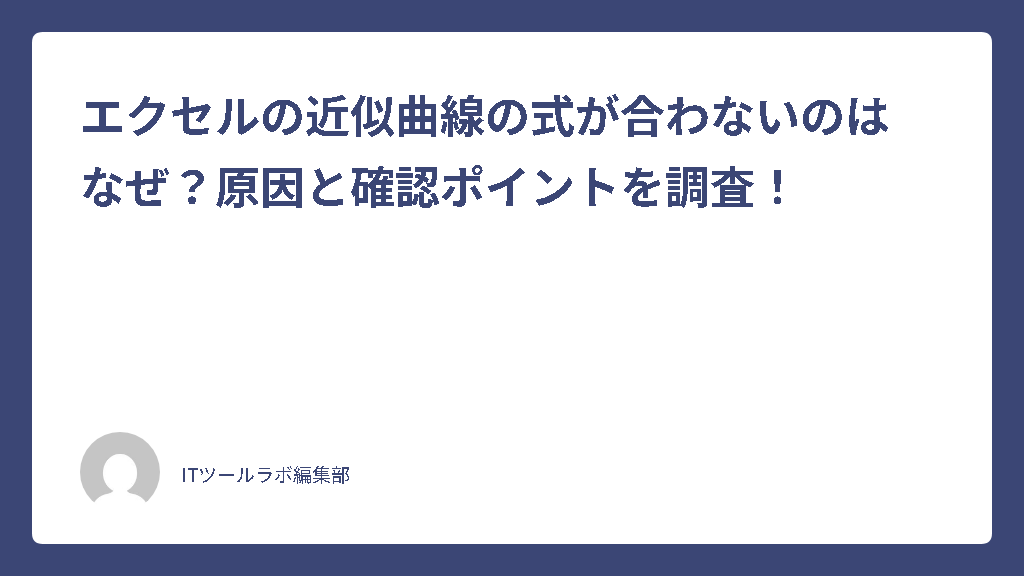 エクセルは、データ分析や資料作成に欠かせない強力なツールです。特にグラフ機能は、数値データを視覚的に表現する上で非常に役立ちます。その中でも、散布図に近似曲線を引いてデータの傾向を分析する機能は、多くの場面で活用されているのではないでしょうか。しかし、グラフに表示された近似曲線の式を使ってみると、なぜか計算が合わないという経験はありませんか。エクセルの近似曲線の式と実際のデータが合わないという問題は、意外と多くの人が直面する落とし穴かもしれません。その原因は、単純な表示上の問題から、選択している近似式の種類、あるいはデータそのものに起因する可能性も考えられます。例えば、エクセルでの近似曲線式の有効数字の扱いを理解していなかったり、式に数値を代入する方法を誤解していたりすることなどが挙げられます。この記事では、エクセルの近似曲線の式が合わないと感じる主な原因と、その確認ポイントを詳しく調査し、一つずつ丁寧に解説していきます。