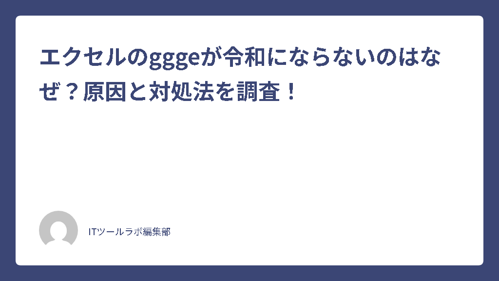 今回はエクセルのgggeが令和にならない原因と対処法についてお伝えしました。以下に、本記事の内容を要約します。