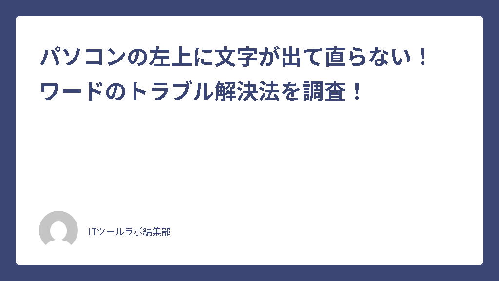 今回はパソコンの左上に文字が表示されて直らない、特にワード使用時のトラブルについて、その原因と解決策を詳しくお伝えしました。以下に、本記事の内容を要約します。