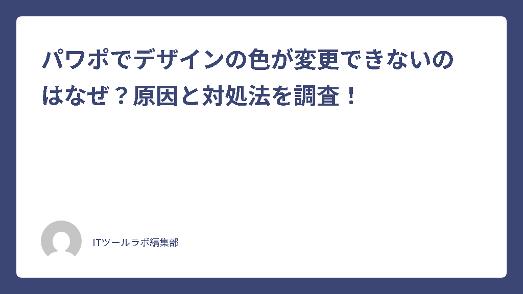 今回はパワポのデザインで色が変更できない原因と対処法についてお伝えしました。以下に、本記事の内容を要約します。