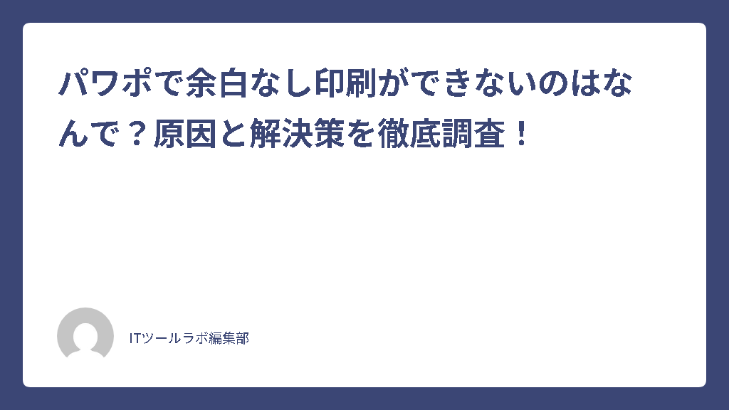 パワーポイント(パワポ)で作成した資料を印刷しようとした際、スライドの周囲に意図しない余白ができてしまい、困った経験はありませんか。デザインの端までしっかり印刷したい、あるいは用紙いっぱいに情報を掲載したいと思っても、なぜか白フチが残ってしまう。パワポで余白なし印刷を試みてもできないという状況は、プレゼン資料や配布物の見栄えにこだわる方にとって、大きなストレス要因となるかもしれません。この問題は、パワーポイントで用紙いっぱいに印刷したいと考える多くの利用者が直面する可能性のある、一般的な課題の一つと言えるでしょう。単なる設定ミスなのか、それとも何か根本的な原因があるのか、その理由は一つではないかもしれません。この記事では、パワポで余白なし印刷ができないのはなぜなのか、その原因を多角的に調査し、考えられる解決策やアプローチを詳しくご紹介していきます。