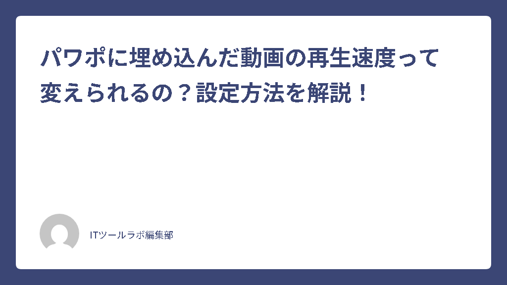 通常の動画プレーヤーなら簡単に再生速度を調整できますが、PowerPoint内ではどうなのでしょうか。設定方法がわからなくて困っている方や、そもそも変更できるのかどうか疑問に思っている方も多いと思います。この記事では、パワポに埋め込んだ動画の再生速度を変更する方法について、初心者の方にもわかりやすく解説していきます。