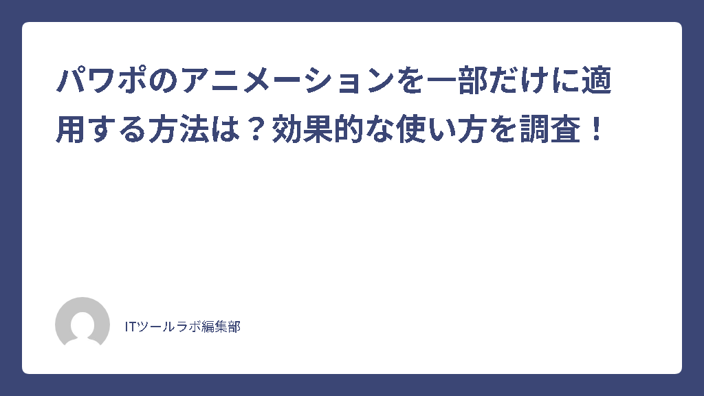 パワポのアニメーションを一部だけに適用する方法は?効果的な使い方を調査!