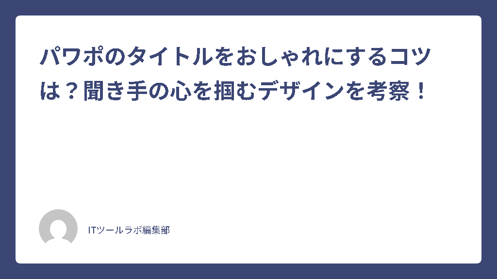 ・パワポのタイトルは聞き手の関心を掴む重要な「顔」である