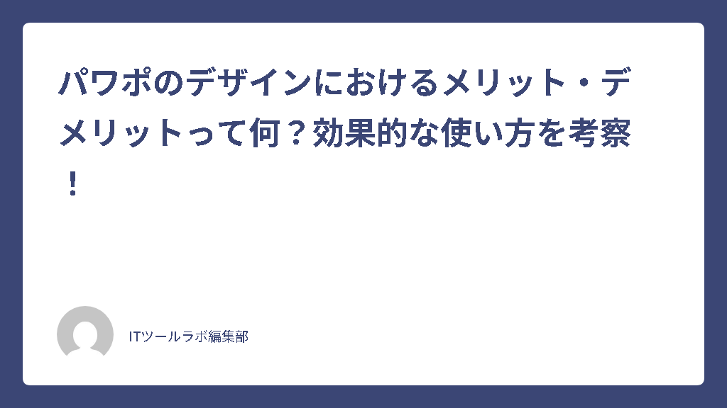プレゼンテーションの現場で不可欠なツールとして広く認知されているパワーポイント(パワポ)ですが、そのデザイン機能は諸刃の剣かもしれません。情報を効果的に伝える強力な武器となる一方で、使い方を誤ると逆に伝わりにくい資料を生み出してしまう可能性も秘めています。パワポのデザインにおけるメリットデメリットを深く理解することは、説得力のあるコミュニケーションを実現するために重要です。単に情報を羅列するだけでなく、パワーポイントのデザイン例をおしゃれに仕上げたり、逆にパワーポイントのデザイン例をシンプルに徹したりと、目的に応じた使い分けが求められるでしょう。見やすいパワーポイントデザイン例を参考にしつつ、パワポの比較デザインや、メリットデメリットの比較表をパワポでどう表現するかなど、具体的なテクニックを知ることも大切です。この記事では、パワポのデザインが持つメリットとデメリットを多角的に考察し、パワポのメリットデメリットの書き方や、パワポデザインの可能性について探っていきます。