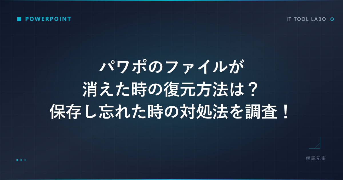 ここでは、パワポが消えた復元を試みる上で遭遇する可能性のある、より具体的なケース(保存したはずのファイルが見つからない、上書きしてしまったなど)と、そもそもこうした事態を防ぐための予防策について調査していきます。復元の可能性を探ると同時に、将来のリスクを減らす視点も持ちましょう。順に見ていきましょう。