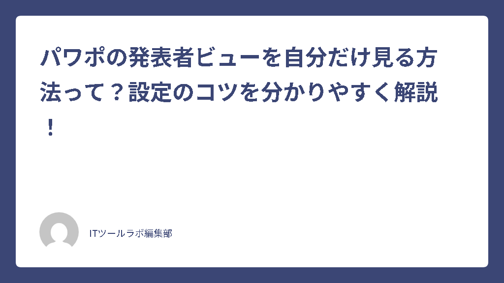 こんにちは。ITツールラボ、運営者のNです。PowerPointでプレゼンテーションを行う際に、発表者ビューを自分だけに表示させたいのに、観客側にも見えてしまった経験はありませんか?特にオンライン会議やプロジェクター接続時に、画面の設定や表示方法で困ってしまう方も多いかもしれません。発表者ビューには次のスライドの内容やノートが表示されるため、これが聴衆に見えてしまうとプレゼンテーションの効果が半減してしまいます。今回は、パワポの発表者ビューを適切に設定し、自分だけが確認できるようにする手順や操作のコツについて、分かりやすく解説していきます。