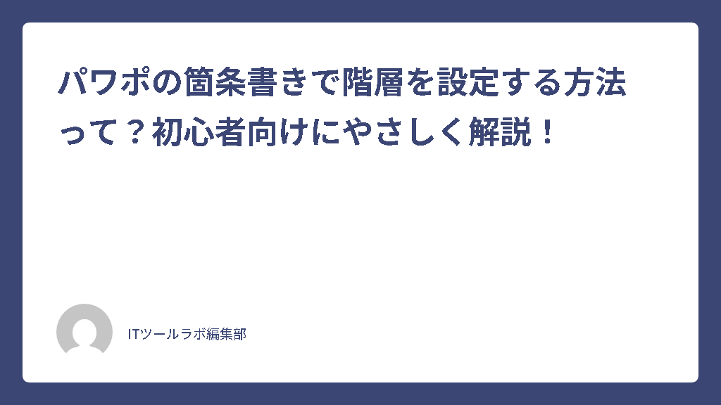 プレゼンテーション資料を作成する際、情報の整理は非常に重要です。特にパワーポイントで箇条書きを使う場面は多いものですが、ただ項目を並べるだけでは伝わりにくいこともあります。そんなときに役立つのが「階層」の設定です。情報の親子関係を明確にすることで、読み手にとってストレスなく理解できるスライドに仕上がります。パワポの箇条書きで階層を使いこなすことができれば、資料のクオリティはグッと高まるでしょう。この記事では、初心者の方でも簡単に実践できる階層設定の方法や、うまくいかないときの対処法について詳しく解説していきます。ぜひ最後まで読み進めてみてください。