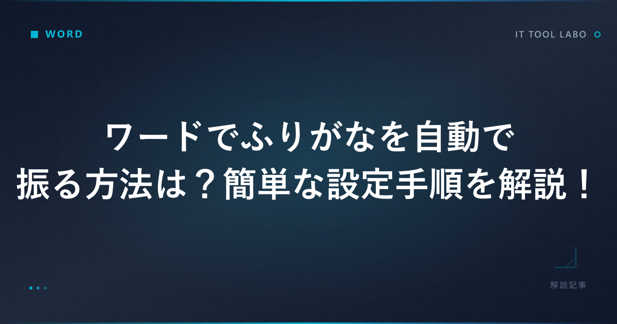 ワード文書を作成する際、特に人名や地名、専門用語など、読み方が難しい漢字にふりがな(ルビ)を振る作業は、意外と手間がかかるものです。もし、このふりがなを自動で振ることができたら、作業効率は格段に向上するかもしれません。