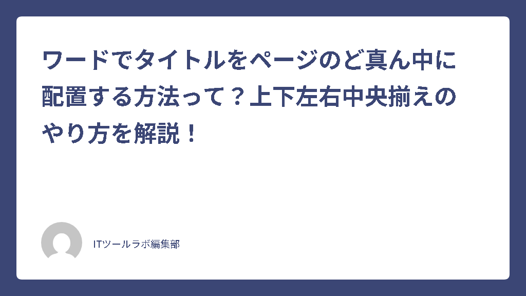 ワードでタイトルをページのど真ん中に配置する方法って?上下左右中央揃えのやり方を解説!
