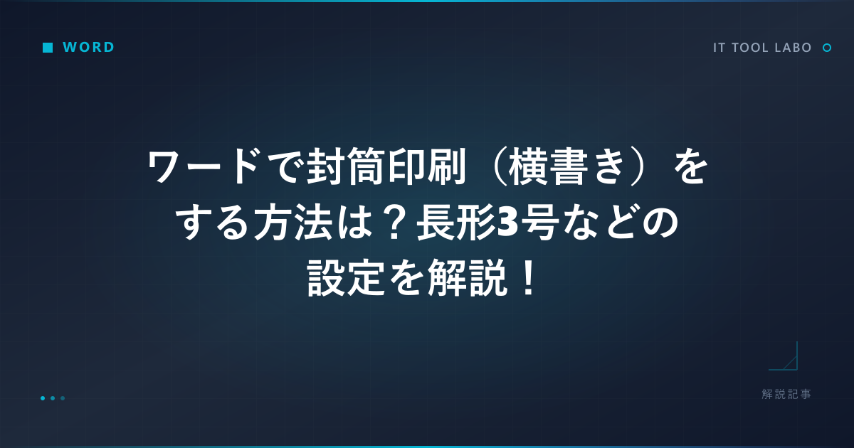 この記事では、ワードの封筒印刷(横書き)の基本的な方法から、長形3号などのサイズ設定、さらにはテンプレートの活用法に至るまで、幅広く情報を整理していきます。