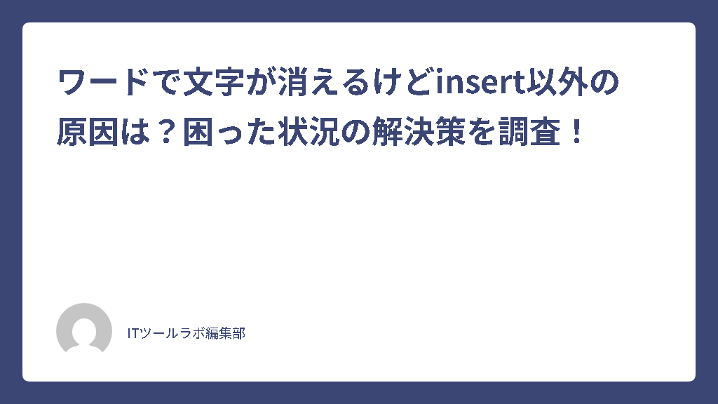 Microsoft Wordで文書を作成している際に、入力した文字が消えてしまう現象に困っている方も多いのではないでしょうか。一般的にはInsertキーによる上書きモードが原因とされていますが、それ以外にも様々な要因で文字が消失することがあります。