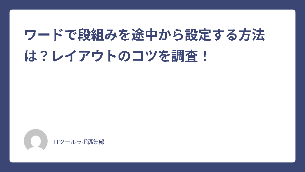 文書の途中から段組みを開始したい場合、特定の手順を踏む必要があります。いきなり[レイアウト]タブから[段組み]を選択しても、多くの場合、文書全体やカーソル位置以降のすべてが設定した段組みに変更されてしまう可能性があるでしょう。ワードで段組みを途中から適切に設定するには、範囲選択が鍵となります。