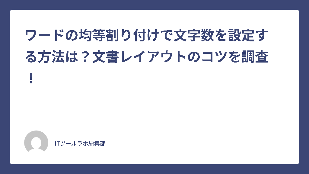 この記事では、Wordの均等割り付け機能、特に文字数を指定する方法に焦点を当て、その基本的な使い方から、うまくいかない場合の対処法、文書レイアウトを整えるためのコツについて調査しまとめます。