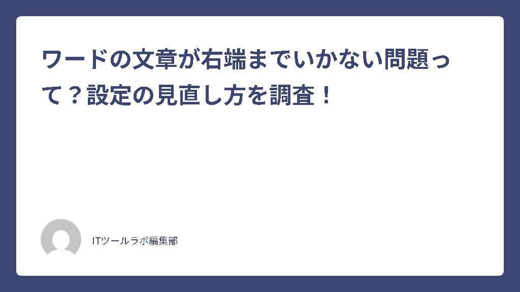 この記事では、Wordで文章が右端まで表示されない問題について、原因の特定から具体的な解決方法まで、わかりやすく整理していきます。設定の見直しポイントをしっかりと把握して、快適な文書作成環境を整えていきましょう。