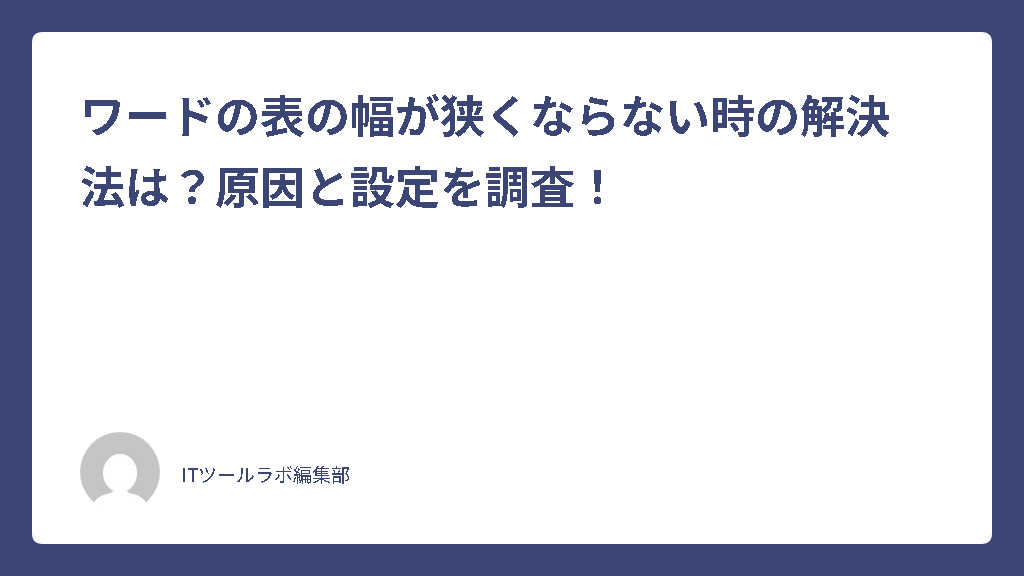今回はワードの表の幅が狭くならない時の原因と解決法についてお伝えしました。以下に、本記事の内容を要約します。