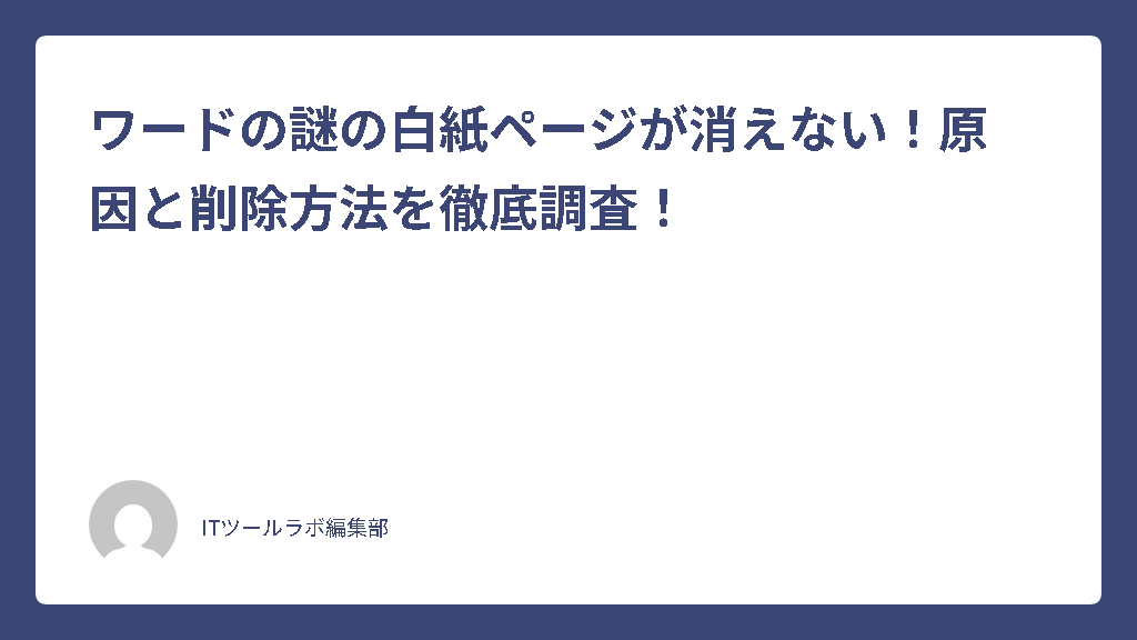 MicrosoftWordで文書を作成している際、意図しない場所に白紙ページが挿入され、削除しようとしてもなぜか消すことができずに困ってしまった経験はないでしょうか。特に文書の最後や途中にできてしまった空白ページは、見た目が悪いだけでなく、印刷時にも余分な紙を使用してしまい、厄介な存在となりがちです。実は、このワードで白紙が消えない問題には、いくつかの隠れた原因が考えられます。例えば、目には見えない編集記号である改ページやセクション区切り、あるいはページの末尾に配置された表などが影響しているのかもしれません。wordで空白ページが削除できない原因は一つではなく、WindowsPCはもちろんのこと、iphoneやmacといった異なるデバイスでも同様の現象が報告されています。この記事では、そんな頑固な白紙ページを削除するための原因究明から具体的な対処法までを、あらゆる角度から徹底的に解説していきます。
