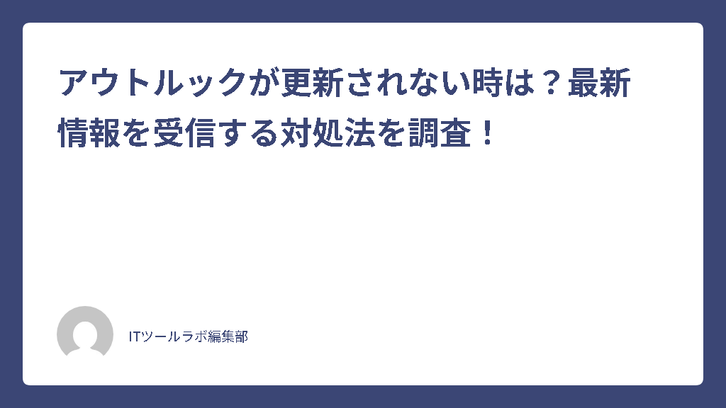 今回はアウトルックの更新がされない場合の対処法についてお伝えしました。以下に、本記事の内容を要約します。