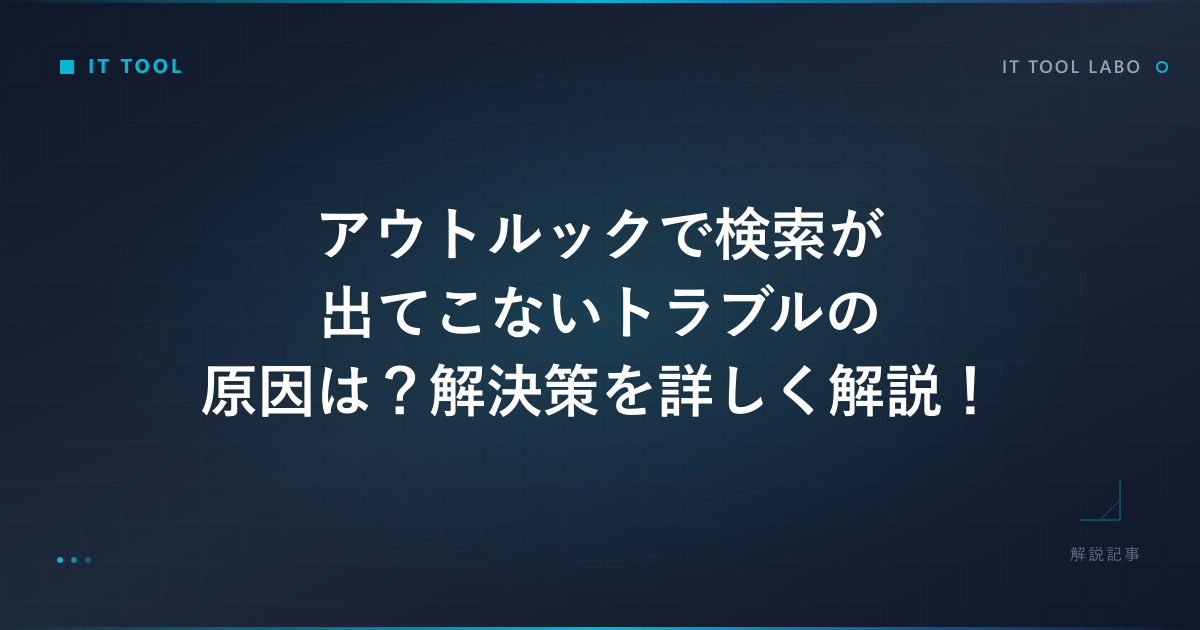 ・ アウトルックで検索機能が不調になる主な原因を体系的に理解できる