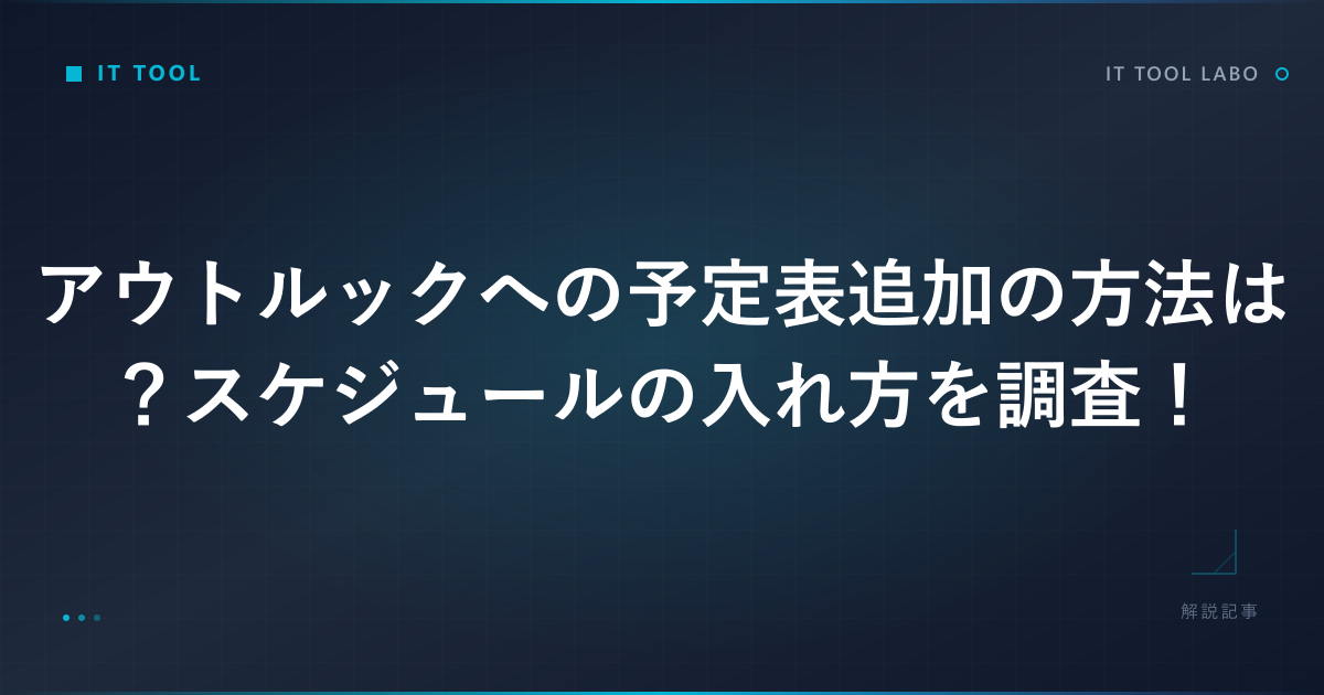 ビジネスシーンにおいて欠かせないツールとなっているのがMicrosoftのOutlookです。日々の業務効率化を目指す中で、アウトルックへ予定表追加をスムーズに行いたいと考える方は多いのではないでしょうか。