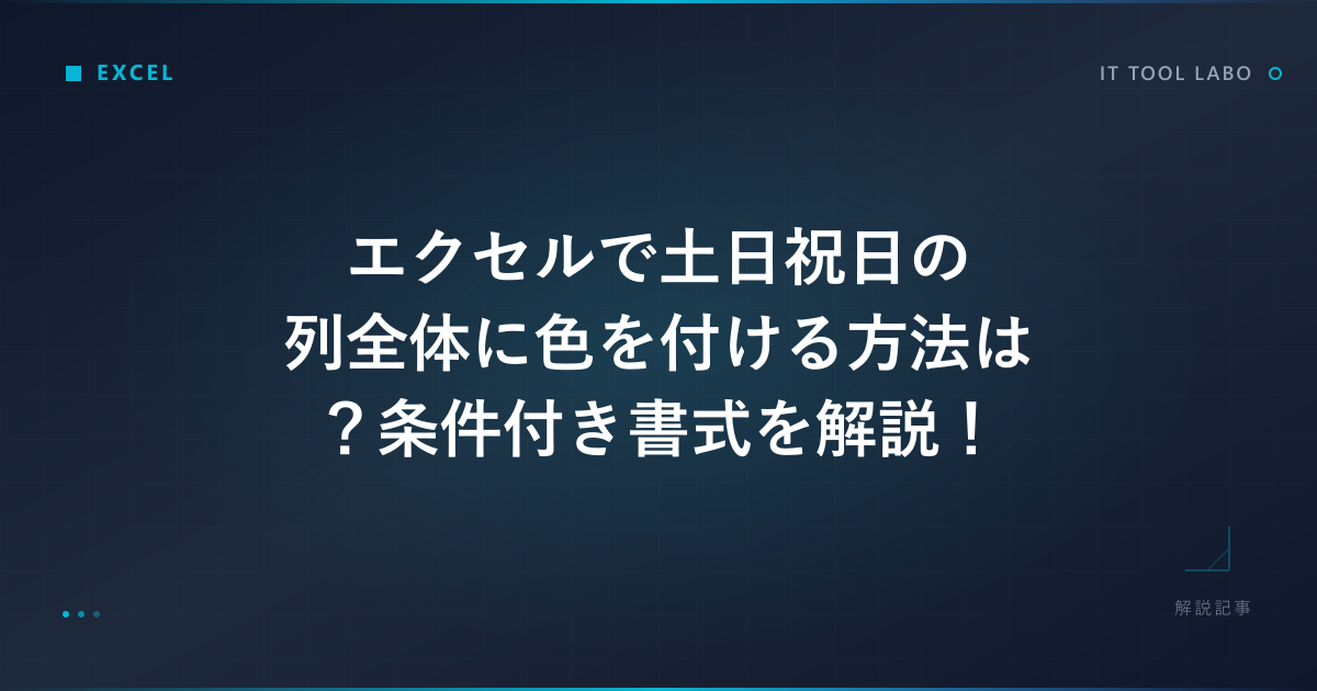 | エクセルの土日色付けを列全体に適用する条件付き書式 | 本文で詳しく解説 |