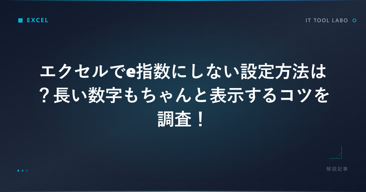 こんにちは。ITツールラボ、運営者のNです。エクセルで長い数値を入力したときに、いつの間にか「1.23456E+10」のようなe指数表記に変わってしまって困った経験はありませんか?せっかく正確な数字を入力したのに、勝手に変換されてしまうと作業が進まずストレスでしょう。