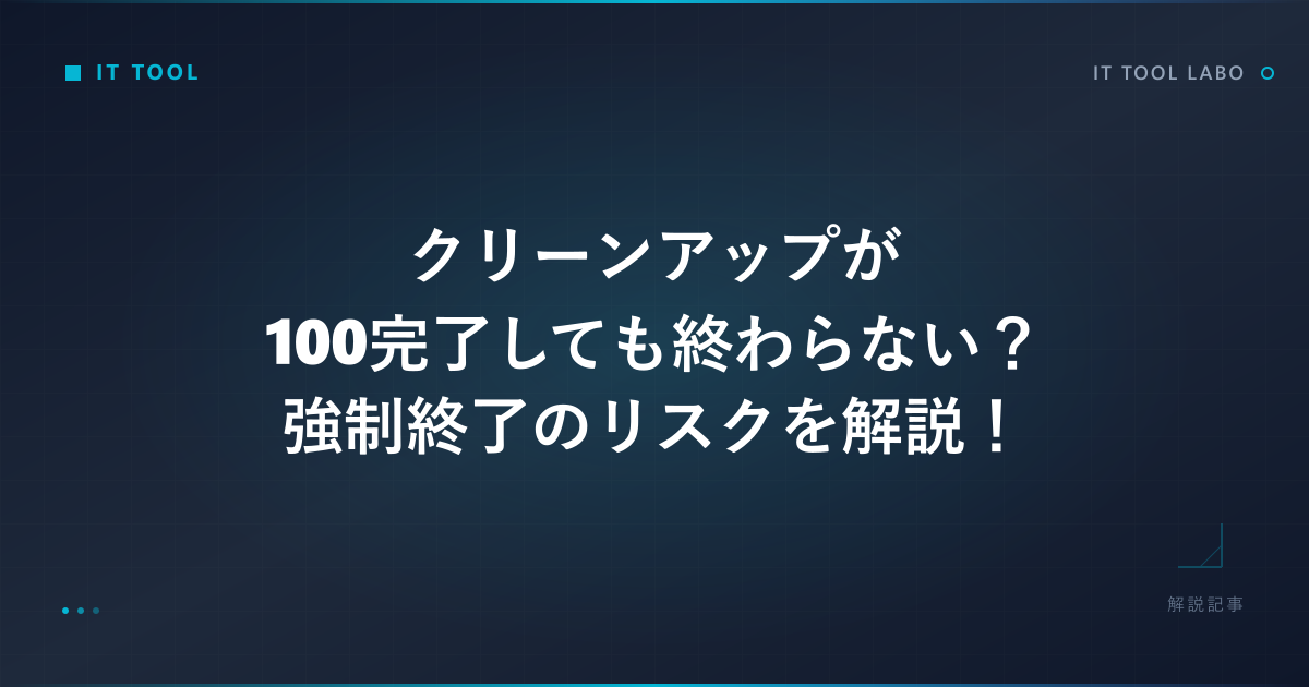 今回はクリーンアップが100完了しても終わらない現象についてお伝えしました。以下に、本記事の内容を要約します。