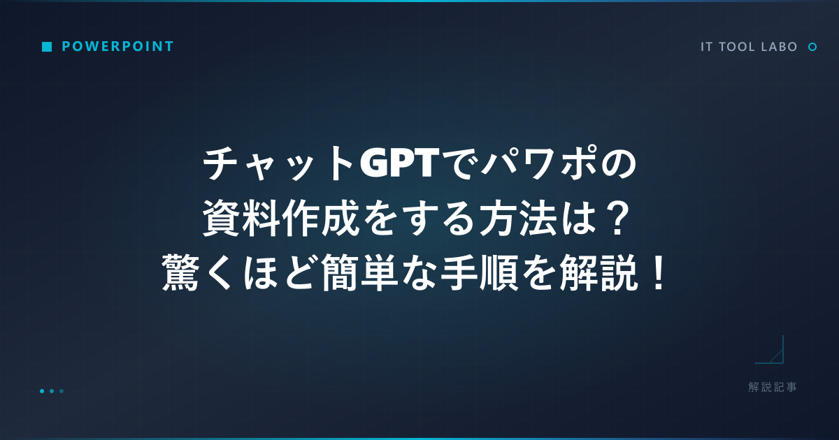 この記事では、チャットGPTを使ってパワーポイントの資料作成を効率化するための具体的な方法や考え方について、WEBライターの視点から情報を整理し、解説していきます。