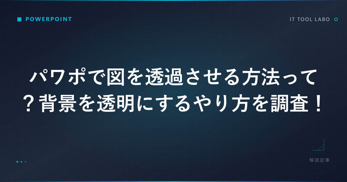プレゼンテーション資料を作成するうえで欠かせないツールといえばPowerPointです。スライドを見やすく魅力的にするためには、画像や図の使い方が非常に重要になります。しかし、配置した画像の背景が白く残ってしまったり、画像の主張が強すぎて文字が見えにくくなったりして困ったことはないでしょうか。実は、PowerPointには画像を加工する機能が豊富に備わっており、専用の画像編集ソフトを使わなくても透明度を調整したり背景を削除したりすることが可能です。