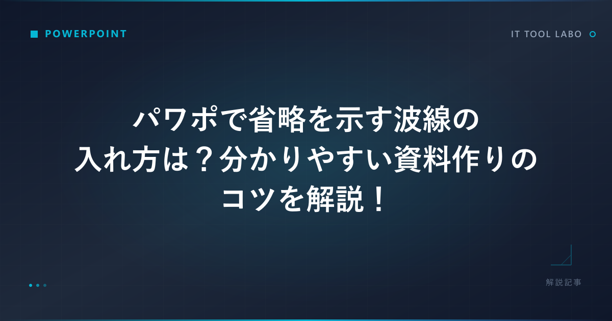 この記事では、パワーポイントで省略を示す波線を描画する方法から、パワポで省略の波線素材やパワポの波線フリー素材といった素材を活用する際のポイントまで、分かりやすい資料作りのコツを幅広く解説していきます。
