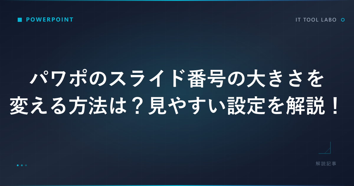 プレゼンテーション資料を作成する際に、MicrosoftPowerPoint、通称パワポは非常に便利なツールです。しかし、細部の設定に悩む方も少なくないかもしれません。特に、スライド番号の表示は、発表の進行や質疑応答の際に重要な役割を果たしますが、初期設定のままだと文字が小さくて見えにくいことがあります。