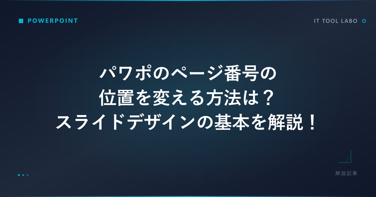 この記事では、スライドマスター機能を中心とした、パワーポイントのページ番号の位置を適切に設定し、統一するための基本的な方法から、応用テクニックまでを解説していきます。