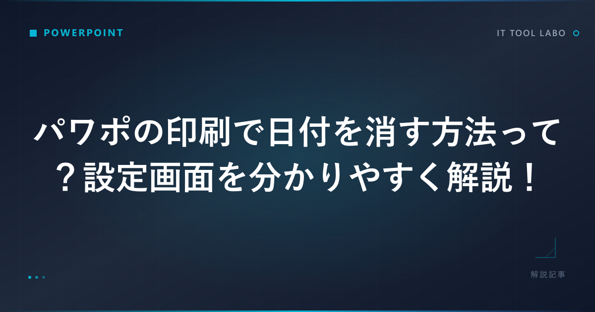 PowerPointで資料を作った後、印刷しようとすると勝手に日付が表示されて困ったことはありませんか。プレゼン資料や配布資料では、日付が印刷されると見栄えが悪くなってしまうこともあります。特に、パワポの印刷設定画面での操作方法がわからず、どこをどう変更すれば日付を消せるのか迷っている方も多いかと思います。