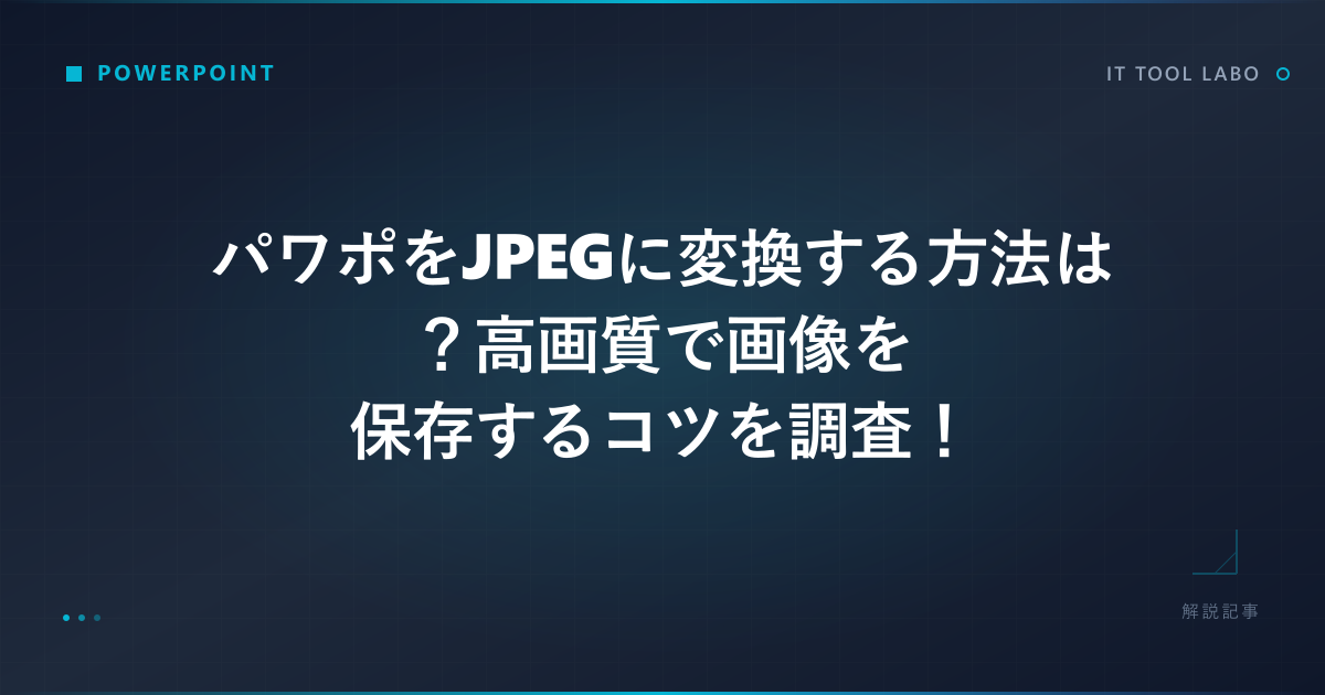 そのようなとき、パワポをJPEGへ変換する方法を知っていると、活用の幅が大きく広がるはずです。特に、せっかく綺麗に作ったスライドですから、パワポをJPEGに変換しても高画質で保存したいと考えるのが自然ではないでしょうか。
