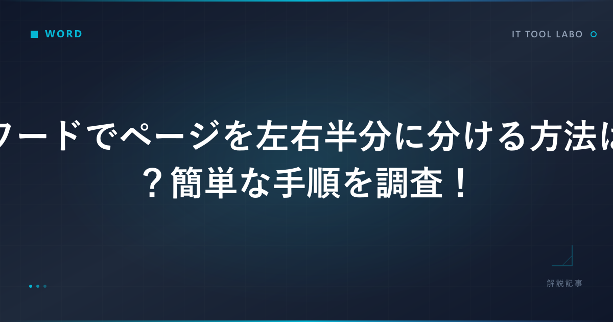 文書を作成していると、1ページ目までは通常のレイアウトで、2ページ目の途中から左右に分けたい、といった要望が出てくることがあります。ワードで真ん中で分けるのを途中から適用するには、「セクション区切り」という機能が非常に役立ちます。