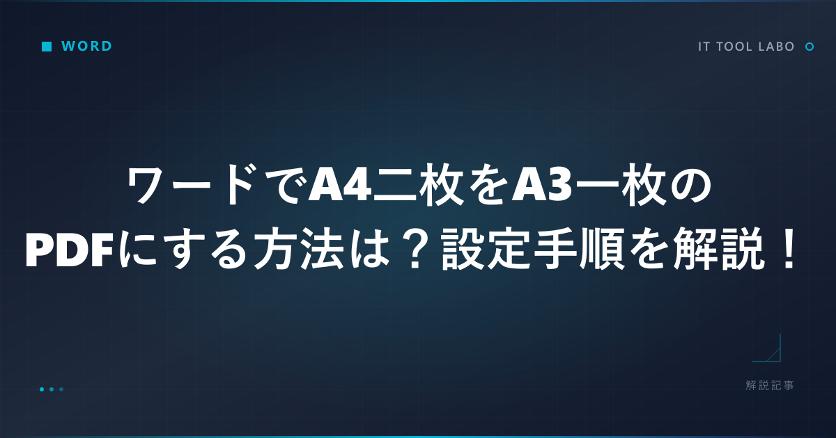 ワードで作成した2ページのA4文書を、1枚のA3用紙にまとめてPDF保存したいと思ったことはありませんか。プレゼンテーション資料や図面、パンフレットなど、A4二枚をA3一枚にまとめることで見やすくなるケースは多いかと思います。ただ、具体的な手順がわからず困っている方も多いかもしれません。