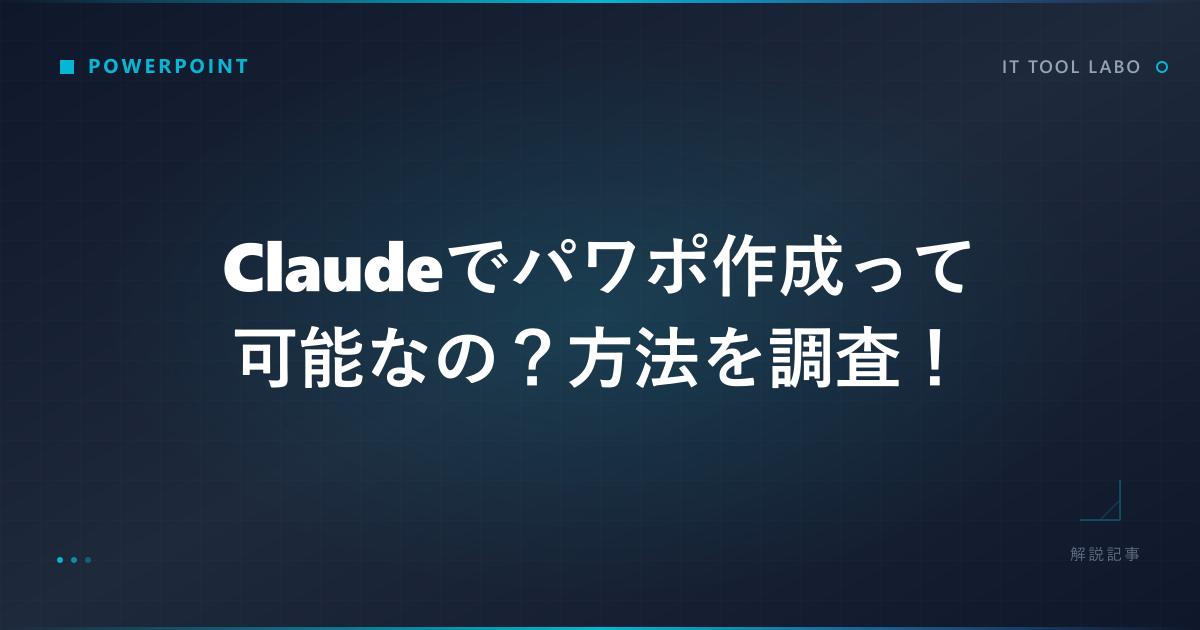 Claudeを使ったパワポ作成について興味を持っている方も多いのではないでしょうか。AIツールでプレゼン資料を効率的に作れたら、業務の時短につながりそうでしょう。無料で使える範囲や、具体的にどんな方法でスライドを生成できるのか、気になるポイントがたくさんあるかと思います。この記事では、Claudeのパワポ作成機能について、基本的な使い方から実践的なテクニックまで詳しく調査していきます。