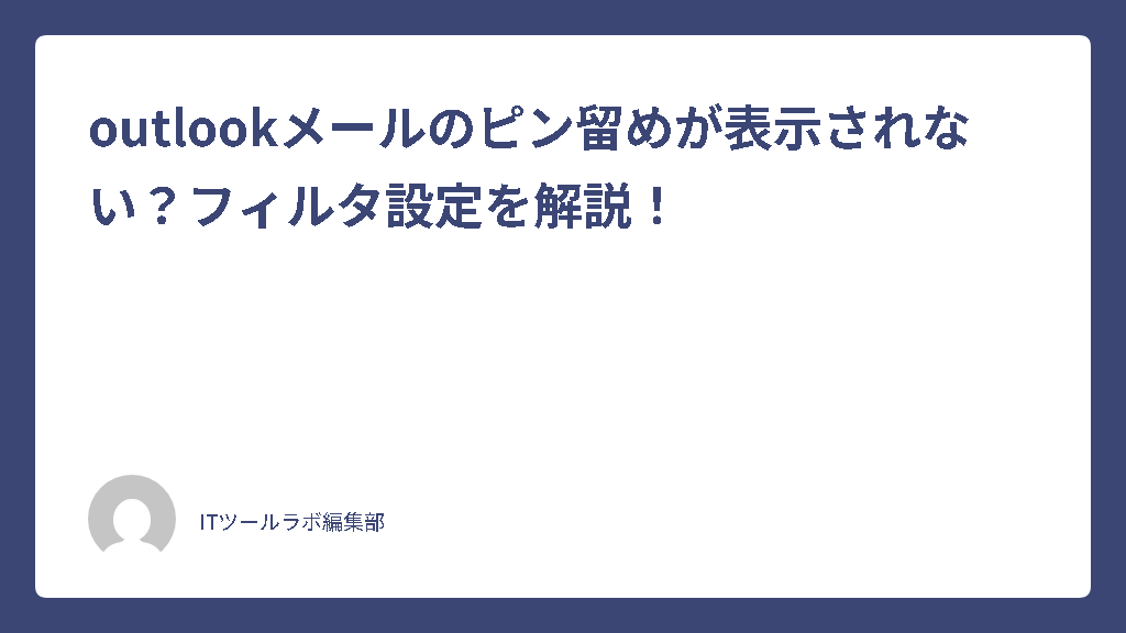 ここではOutlookメールのピン留めが表示されない原因と設定方法について説明していきます。日常的に使う機能だからこそ、表示されない原因を特定し、適切な設定を行うことが重要です。フィルタの設定やアプリの挙動、デスクトップ版特有の事情など、様々な角度から可能性を探っていきます。順に見ていきましょう。