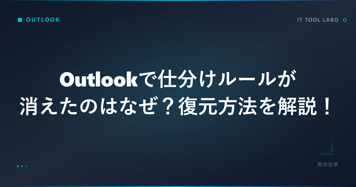 Outlookで設定していた仕分けルールが、気づいたら消えてしまったという経験はありませんか。自動振り分けが機能しなくなると、メール整理が一気に煩わしくなって困ってしまいます。