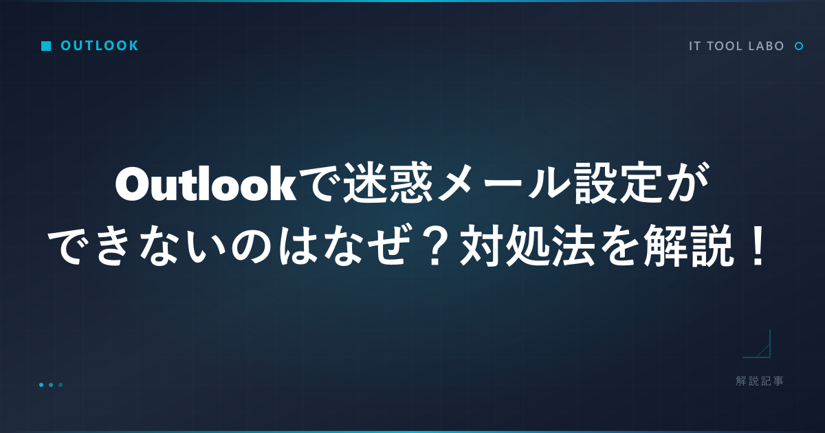 Outlookで迷惑メール設定ができないとき、原因はアプリの種類・アカウントの契約状態・組織のポリシー・リストの上限など複数に分かれます。まずは自分の環境がどこに当てはまるのかを把握すると、必要な対処法が一気に絞り込めます。