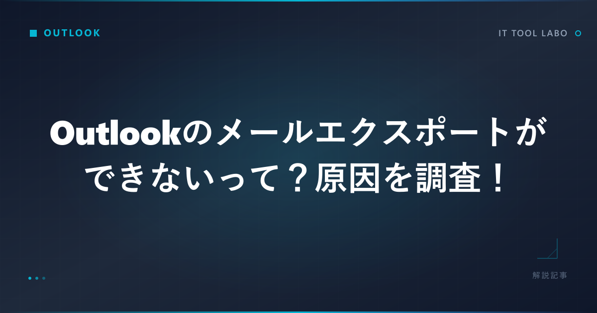 Outlookでメールのエクスポートができない問題は、複数の要因が重なって発生することが多いです。まずは基本的な原因を理解して、適切な対処法を選択していきましょう。
