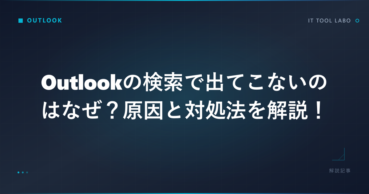 Outlookの検索で結果が表示されない場合、いくつかの原因が考えられます。ここでは代表的な原因を取り上げて、それぞれの仕組みを分かりやすく説明していきます。